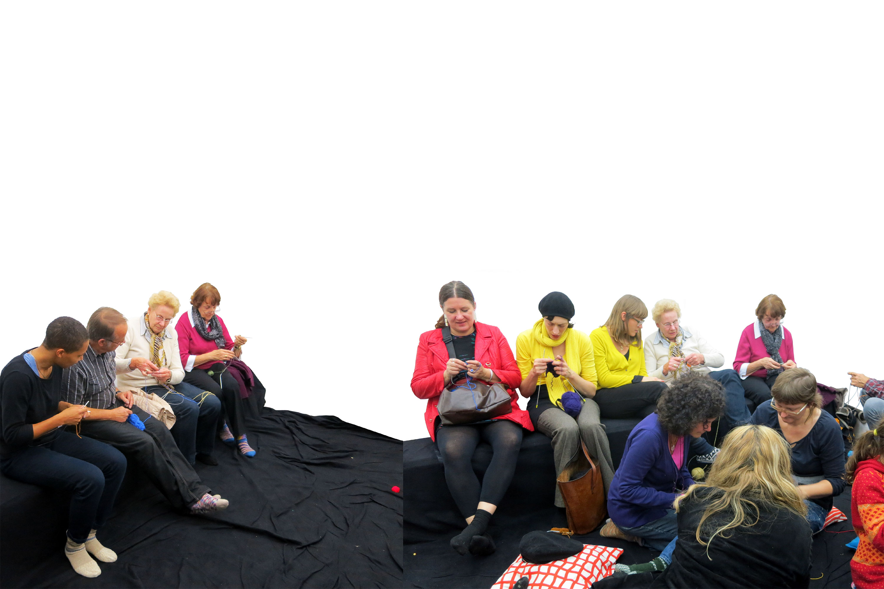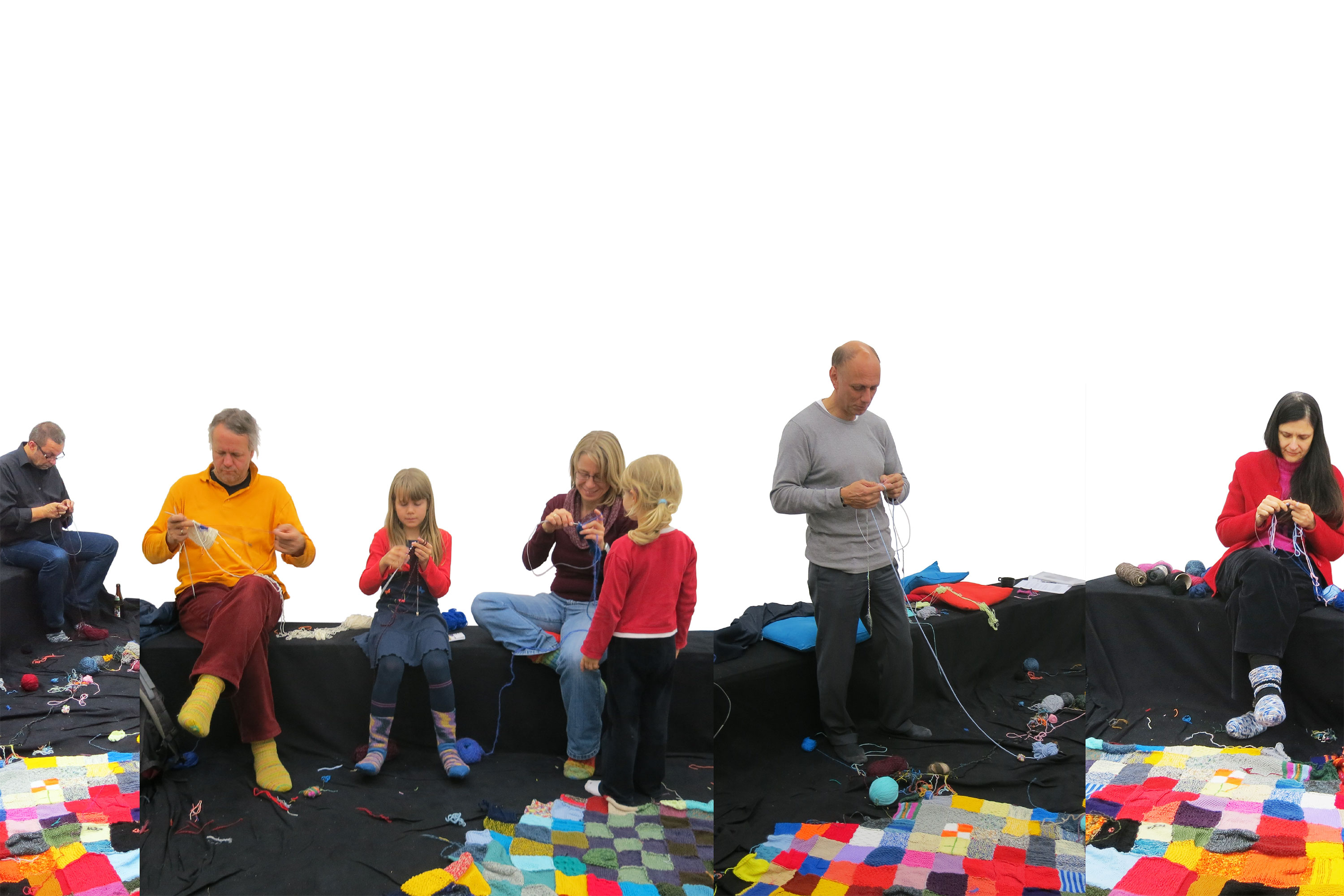 Das Strickkreis-Set lädt Ausstellungsbesucher*innen dazu ein, die Gemeinschaftsarbeit aus Wollresten, Fleiß, Gesprächen und Gedanken weiterzuentwickeln. Am Ausstellungsende wird alles zusammengepackt und eingelagert, bis der nächste Produktions- und Ausstellungsort gefunden ist.