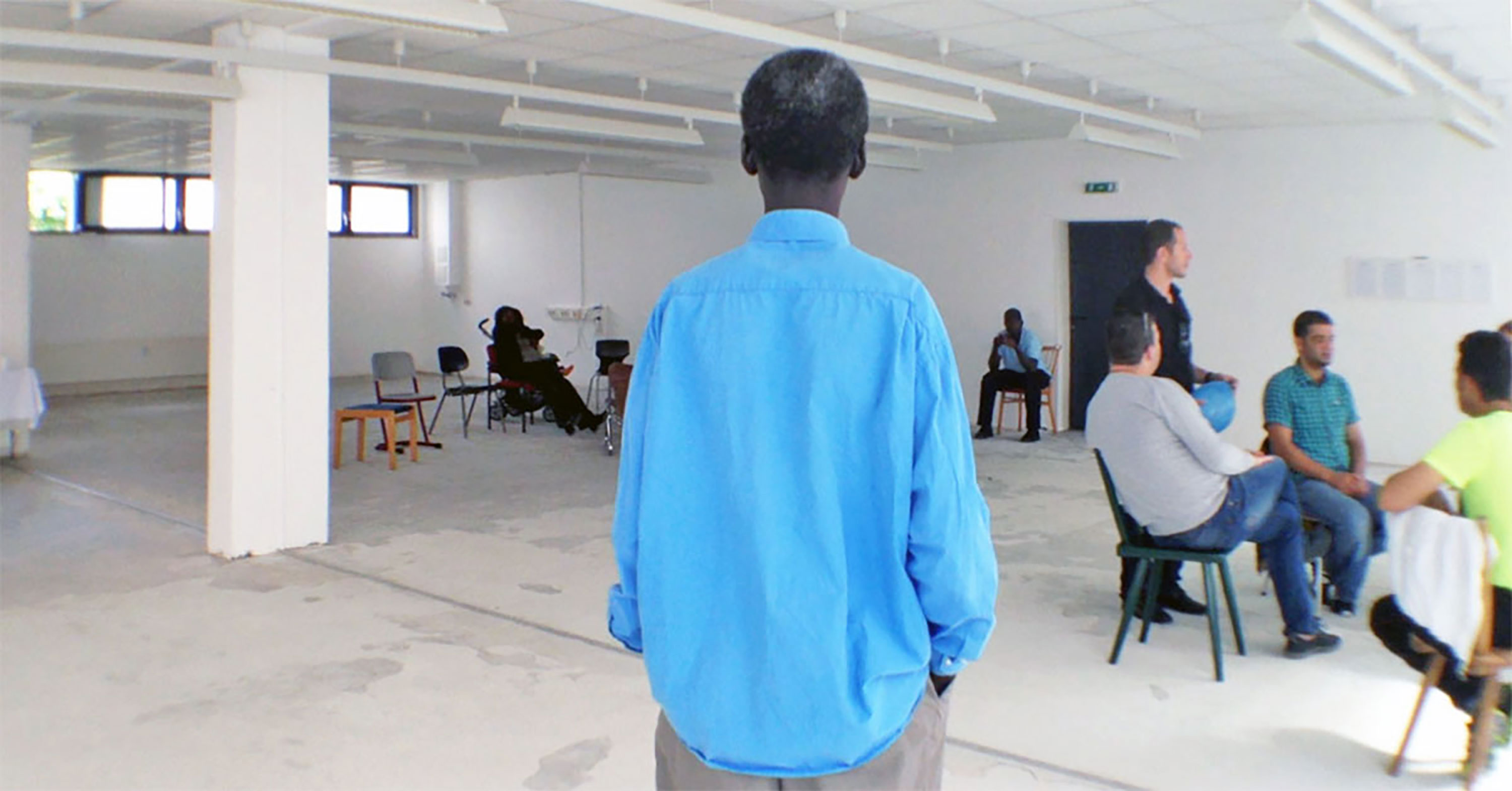 Nach vielen gemeinsam verbrachten Stunden wissen wir kaum etwas voneinander, unsere mangelnden Sprachkenntnisse machen das Erzählen unmöglich, doch die Zeit schafft eine andere Form der Nähe, die ungewöhnliche Situation auch. Es werden keine erkennbar neuen Rollen, Interventionen oder Strategien entwickelt. Die Arbeitszeit wird immer verlängert, einmal warten wir acht Stunden. Ich werde immer wieder um die Fortführung der Arbeitsgelegenheit gebeten. Wegen des Geldes aber vor allem wegen des großen Aufenthaltsraumes.
